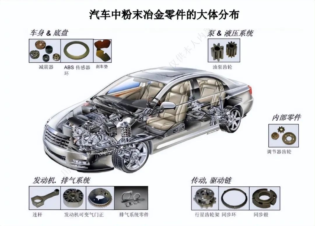 汽車行業(yè)是結(jié)構(gòu)粉末冶金零件的主要市場(chǎng),在粉末冶金零部件下游應(yīng)用中占比約為60%,是促進(jìn)粉末冶金行業(yè)發(fā)展的核心動(dòng)力。